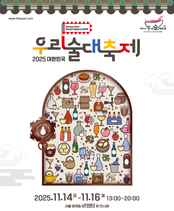 전통주의 매력을 한자리에서 즐길 수 있는 국내 최대 규모의 전통주 축제, ‘2025 대한민국 우리술대축제’가 오는 11월 14일(금)부터 11월 16일(일)까지 서울 양재동 aT센터 제1전시장에서 열립니다.